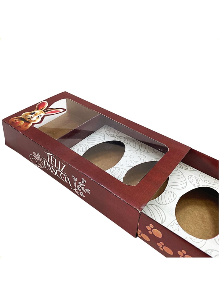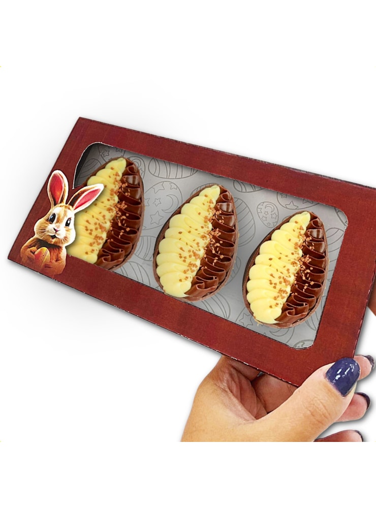 Caixa para Trio de Ovo de Páscoa de Colher - 50g - Marrom - Pct com 10 un
